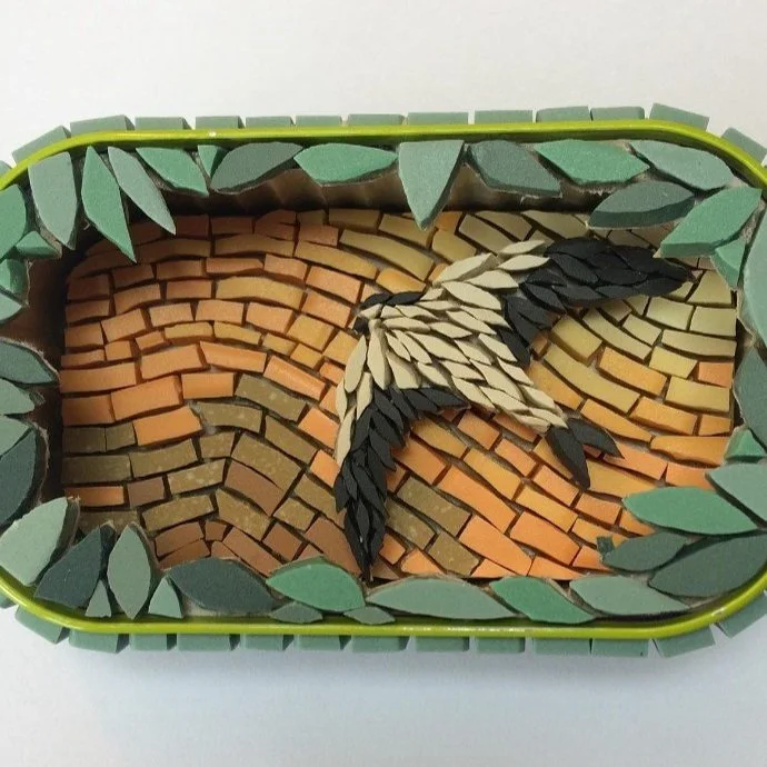 A fellow YAS studio holder at Persistence Works, Coralie is well renowned in Sheffield and the region for her incredible mosaics. As well as creating beautiful, and often enormous public art pieces, she also welcomes people into her workshop every week for classes, where they happily spend hours learning the craft, creating their own special mosaics for the garden or kitchen splashback. If you’re local, check out her in person workshops - but if not, she offers ‘sardine tin mosaic’ workshops which include a virtual tutorial.